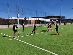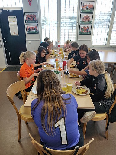 Sedan blev det en kort promenad till Västberga IP följt av mellanmål och ett vanligt träningspass.