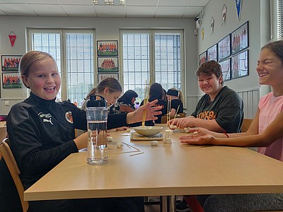 Efter träningen åt vi tacos och tittade på film i klubbhuset.