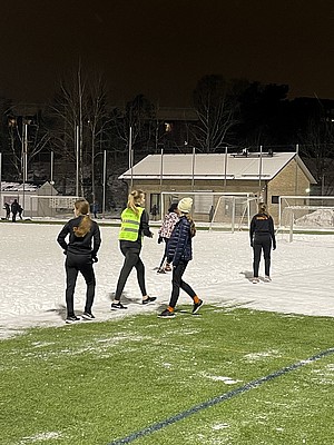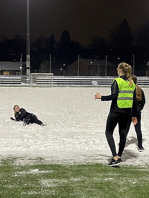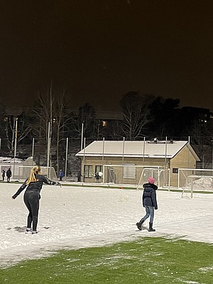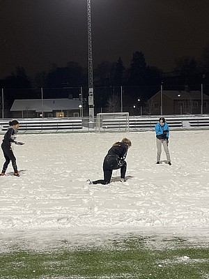 När träningen var slut passade de på att ha snöbollskrig som bilderna visar.