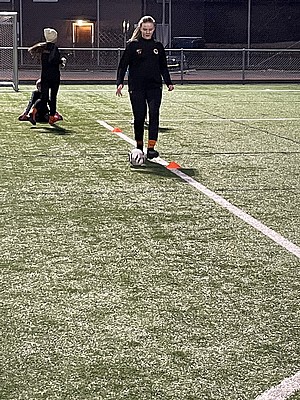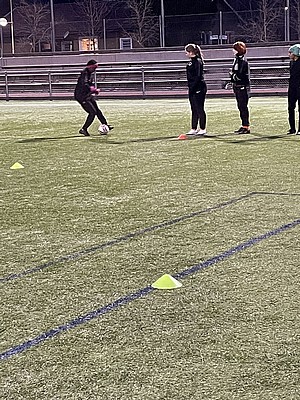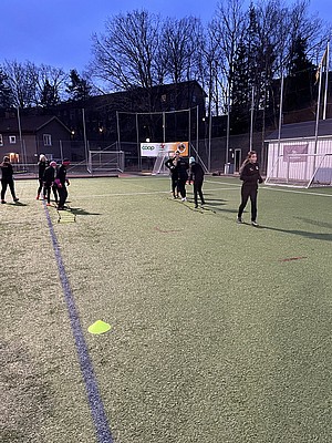 Trots kallt väder så körde tjejerna på idag med knäkontroll, snabba fötter, bollkontroll och lite match spel.