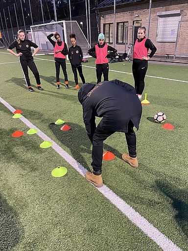 Mycket bra tempo och fokus sammanfattar kvällens träningspass. 😁Träningspasset bestod av knäövningar, passningsövningar samt spel där laget skulle använda bredden av planen. Oscar körde även lite teori..