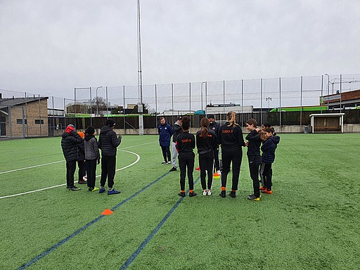 Nyhet i årets första tränarutbildning var att vi hade ”övningsgrupp”, med spelare från våra Flickor 08/09 samt pojkar P09, kursdeltagarna delades i två grupper och tilldelades 2 övningar var som sedan gjorde övningarna tillsammans med övningsgruppen.