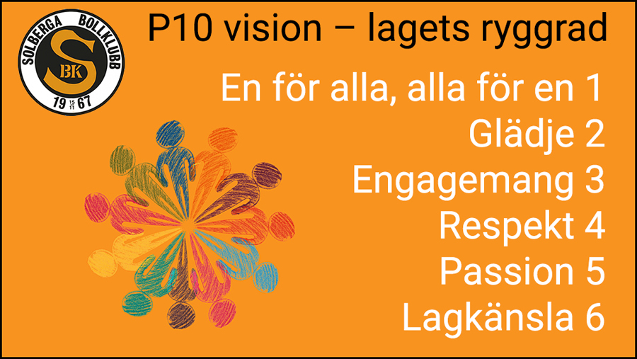 Vi kommer att med start i morgon lördag presentera de riktlinjer och målsättningar som vi P10 har satt upp. Det är ett medel och ett stöd för alla spelare, ledare och föräldrar i P10.
