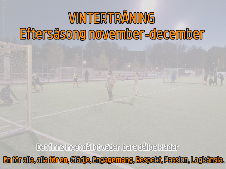 Träningsmatcher, vi planerar för att ha 2 träningsmatcher under november-december, mer om matcherna kommer vi att meddela vid senare tillfälle.