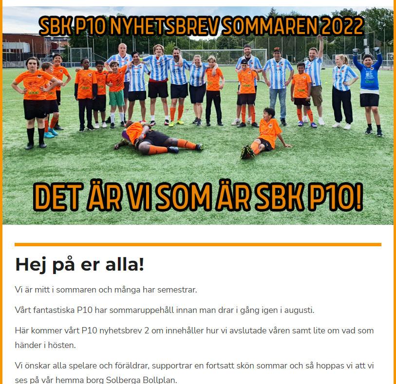 SBK P10s digitala nyhetsbrev ger dig nyheter och annan aktuell information från vår verksamhet, som till spelade matcher, trivselaktiviteter och mycket mera.
