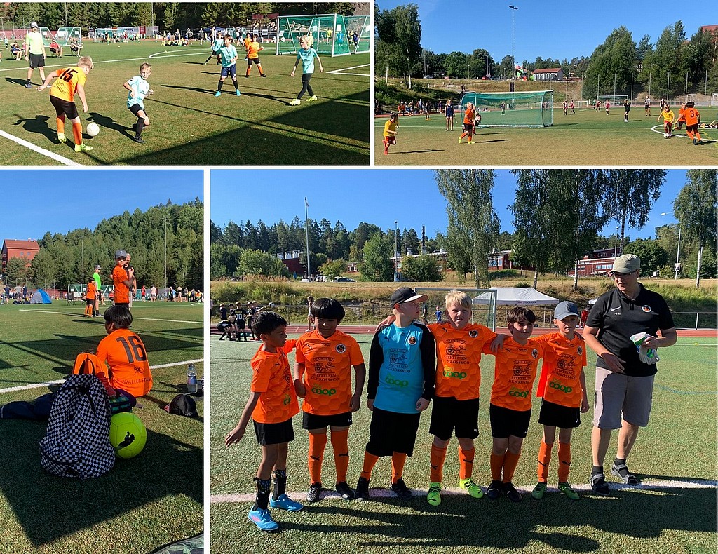 Det här var alltså de första matcherna sedan 14 juni. vilket bl.a. märktes på orken, men hettan under en av sommarens varmaste dagarna tog också kraft från våra spelare. De flesta hade förmodligen också lagt sig till med andra, mer bekväma sovvanor, under sommarlovet varför söndagsmorgonen blev en utmaning i sig. Första matchen spelade kl. 09:00 och för att vara på Ingarö IP i god tid innan var det samlig vid Solberga BP kl. 07:30 - 07:45 men killarna var trots den tidiga morgonen ordentligt taggade. Matcherna var 2 x 15 minuter och generellt räckte energin ganska bra fram till halvtid men andra halvlek blev tyngre.