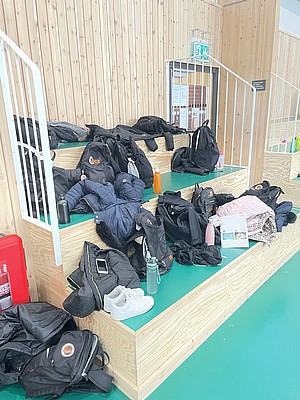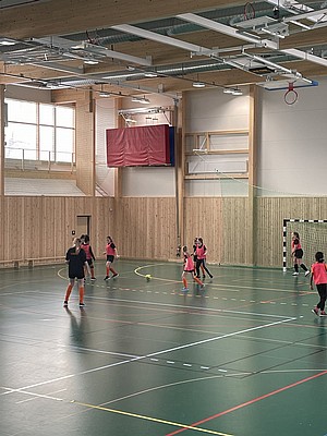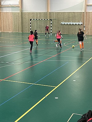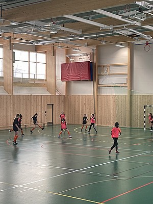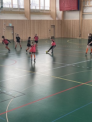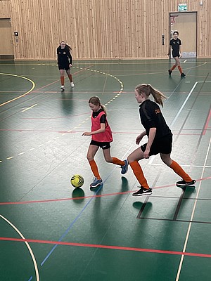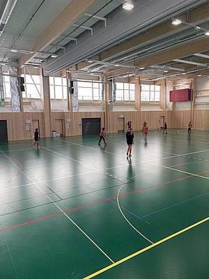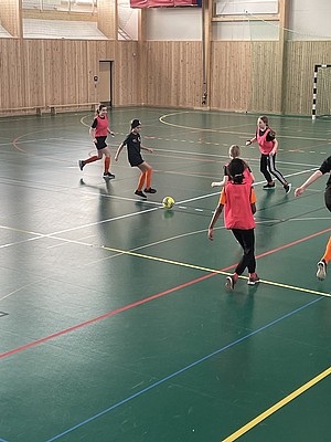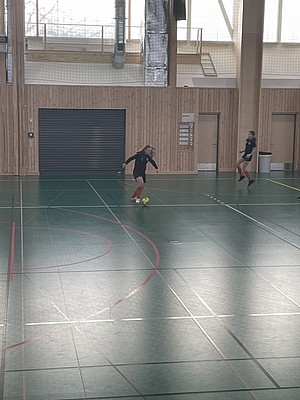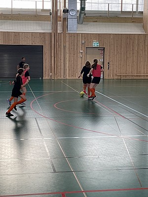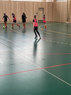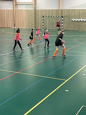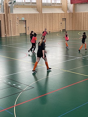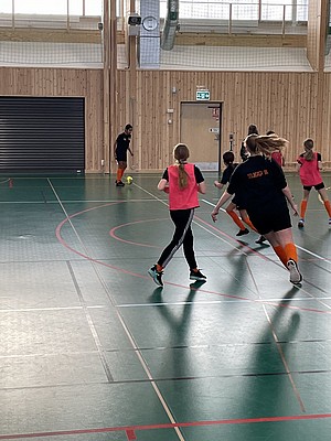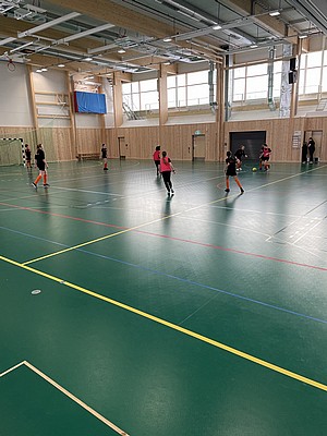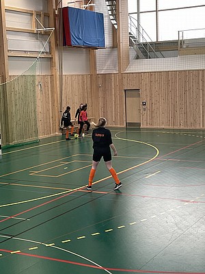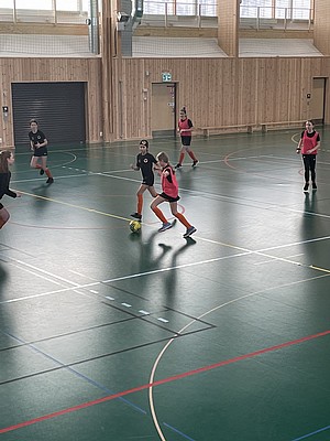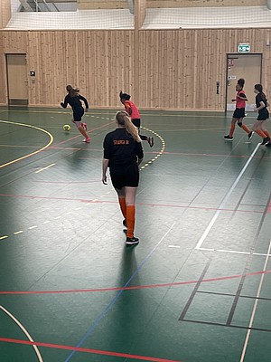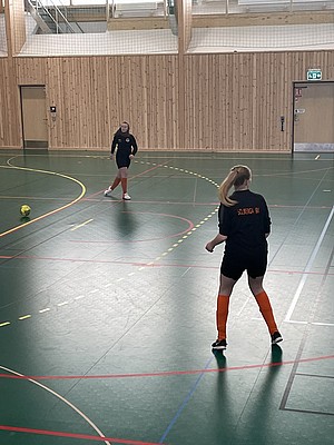Efter veckor av utomhus fysträning i kylan så fick vi flytta in i värmen och lira boll i en storhall. Detta var uppskattat.