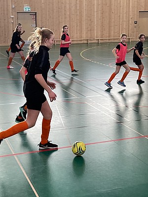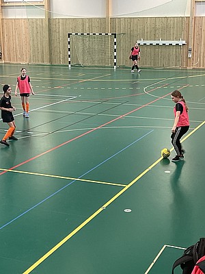 Tjejerna började lite försiktigt och vi kände inte riktigt igen våra spelare, men efter ca 10 min så hade de hittat tillbaka till sitt vanliga spel. Några passade även på att testa nya dribblingar. Mycket skratt och glada miner var dagens tema på träningen.