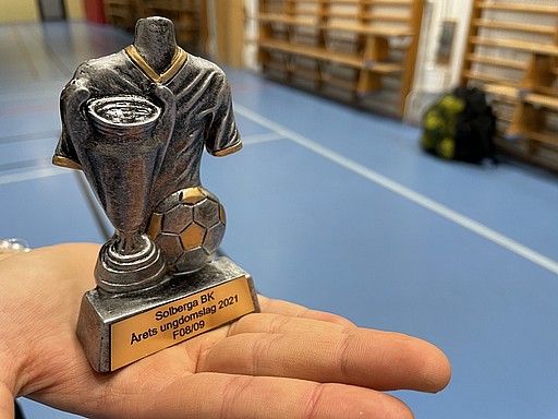 "F08/09 har arbetat aktivt med att skapa en positiv och trygg miljö både på och utanför fotbollsplanen, Trots en smal trupp lyckades de mycket bra i sin första säsong i 9mot9. Laget har hållit ihop trots att 10 spelare har slutat under ssäsongen, för det belönas laget med föreningens fina vandringspris Årets barn & ungdomslag 2021".