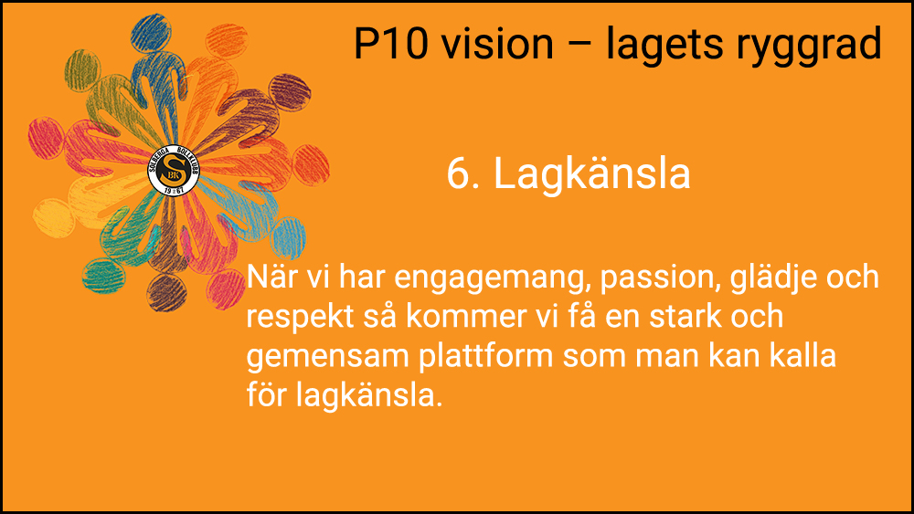 När vi har engagemang, passion, glädje och respekt så kommer vi få en stark och gemensam plattform som man kan kalla för lagkänsla.