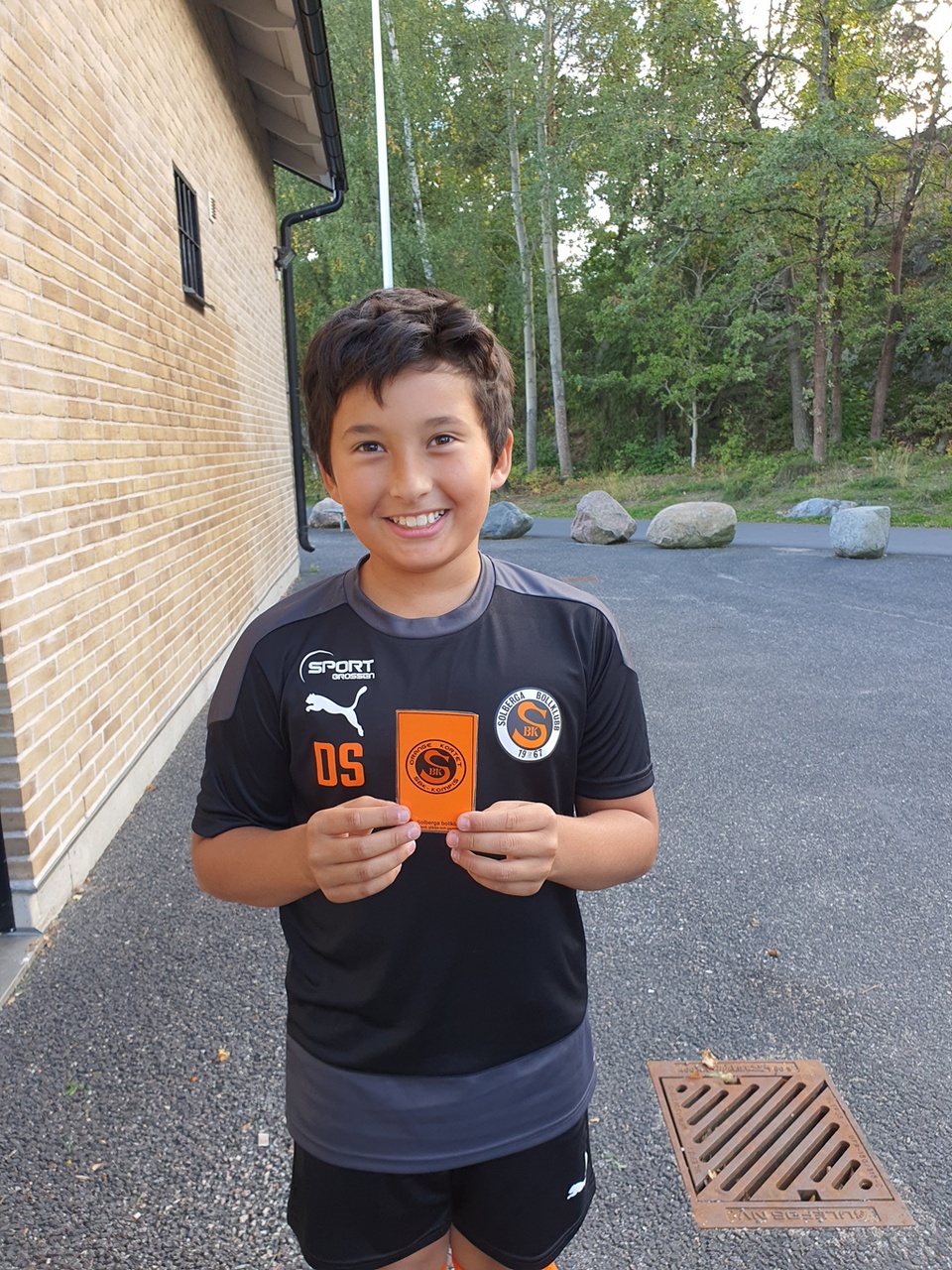 Vi gratulerar David som får Orange kortet, Orange kort finns för att lyfta fram och visa på alla goda föredömen. Kortet är P10 schysst kompis-pris, delas ut av ledarna och går till en-tre spelare varje vecka som utmärkt sig på ett schysst sätt. Orange Kort för P10 kompis delas ut vid onsdags träning.
