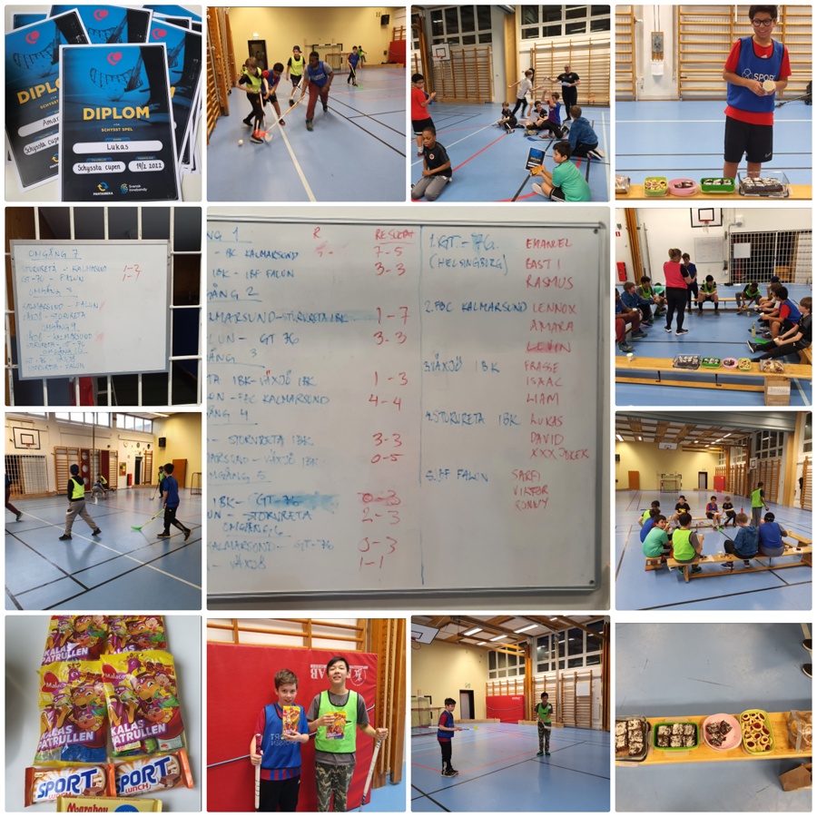 Vi spelade i drygt 1,5 timme sedan vart det jonglering tävling dvs trixa med bollen, tävlingen gick ut på att studsa bollen så många gånger på innebandyklubbans blad.