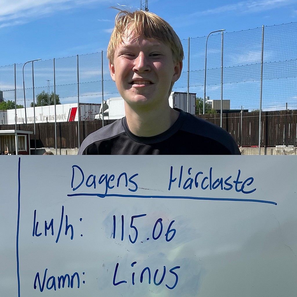 Det såg länge ut som att Linus skulle vinna med sitt skott på 111,00 km/h.
